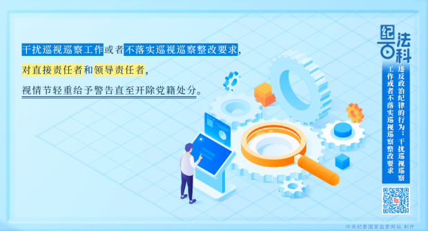 党章第十四条对巡视巡察工作作出规定。《中国共产党党内监督条例》对开展巡视巡察和整改工作提出明确要求。《中国共产党巡视工作条例》第四十六条详细规定了干扰巡视和不落实巡视整改要求的6种具体情形,即(一)隐瞒不报或者故意向巡视组提供虚假情况;(二)拒绝或者不按照要求向巡视组提供有关文件资料;(三)指使、强令有关单位或者人员干扰、阻挠巡视工作,或者诬告、陷害他人;(四)组织领导巡视整改不力,落实巡视整改要求不到位,敷衍应付、虚假整改;(五)对反映问题的干部群众进行威胁、打击、报复、陷害;(六)其他不配合或者干扰巡视工作的情形;并规定被巡视党组织及其工作人员有这些情形之一的,视情节轻重,依据有关规定对该党组织领导班子主要负责人或者其他有关责任人员,给予批评教育、责令检查、诫勉、组织处理或者党纪、政务处分;构成犯罪的,依法追究刑事责任。