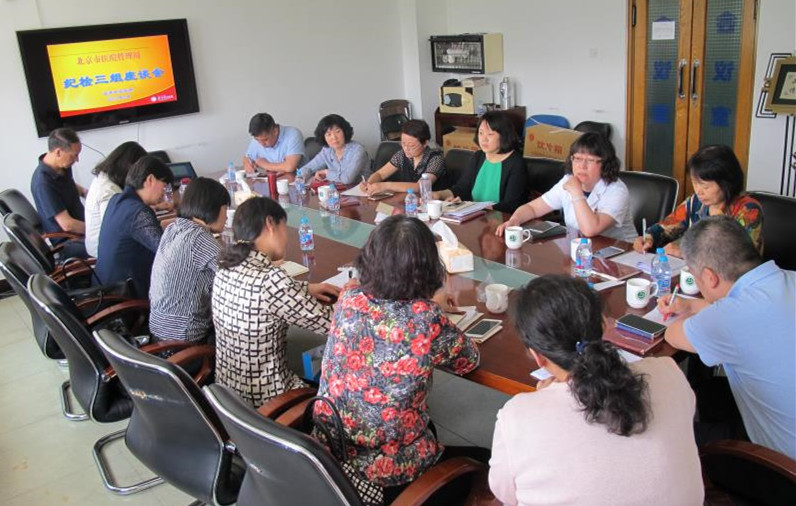 5月11日上午,医管局市属医院第三纪检组在我院门诊楼五层会议室召开2017年上半年座谈会,主题是2017年工作设想和问题探讨。来自片区内的朝阳、妇产、安贞、地坛、胸科、首儿所、清华长庚和中医共8家医院的16名纪检监察干部参加座谈会,会议由组长单位朝阳医院严惠芬主任主持,北京中医医院党委副书记、纪委书记程军到会并讲话。