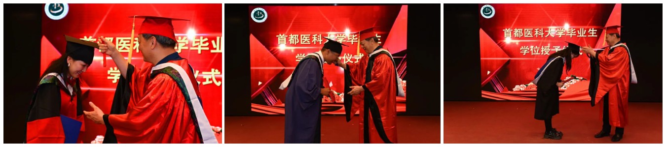 学位委员会主席刘清泉为全体毕业生拨穗正冠。