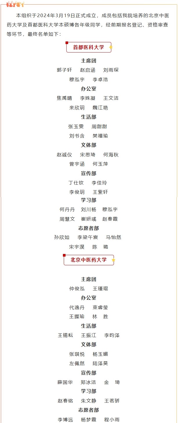 春暖花开三月天,拂堤杨柳醉春烟,在这个万物复苏的季节,首都医科大学附属北京中医医院首届学生会在老师和同学们的共同努力下顺利成立啦!